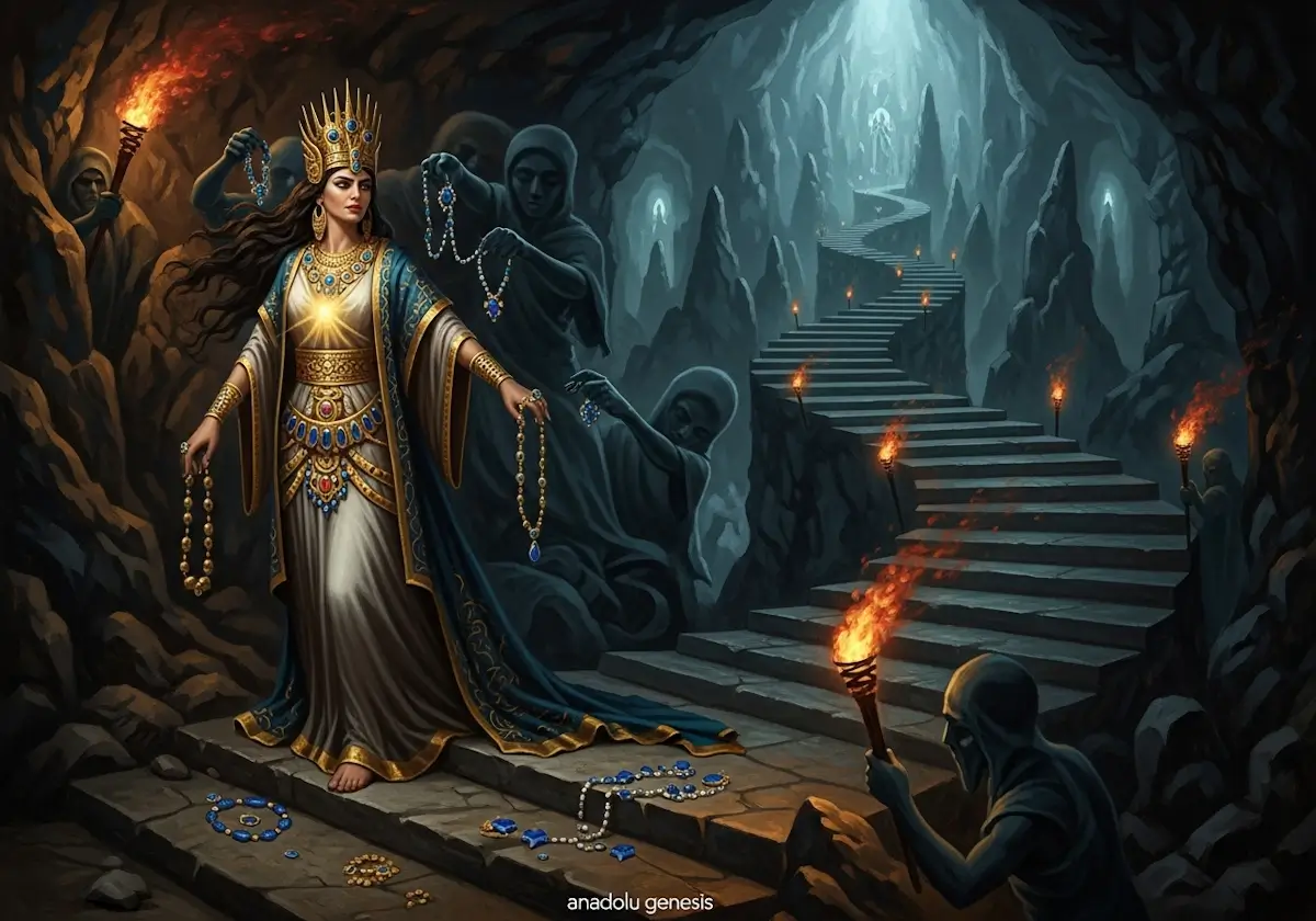 İnanna, Ereshkigal’in hükümranlığını kıskanır; “me”lerin yeraltı kısmını ele geçirmek ister. Bu, tanrıça hırsını simgeler; bereketin ölümle yüzleşmesini vurgular. Öykü, İnanna’nın mücevherlerini (taç, kolye, yüzük) bırakmasını detaylandırır; her parça, bir gücün terkini temsil eder. Arkeolojik olarak, Uruk IV tabakasındaki İnanna mühürleri, bu ikonografinin erken kökenlerini doğrular; rekabet, ana tanrıça kültünün evrimini pekiştirir.