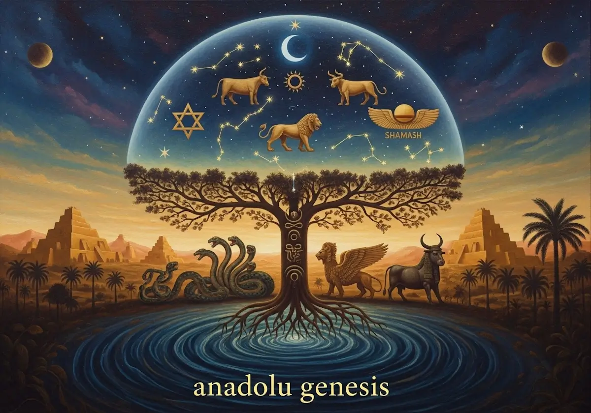Anadolu Genesis tarafından hazırlanan bu bölüm, Mezopotamya’da sembollerle kozmolojinin elementlerin anlamlarını, tapınak mimarisindeki temsillerini ve astroloji ile matematiksel düzenin ritüel bağlantısını özetler.